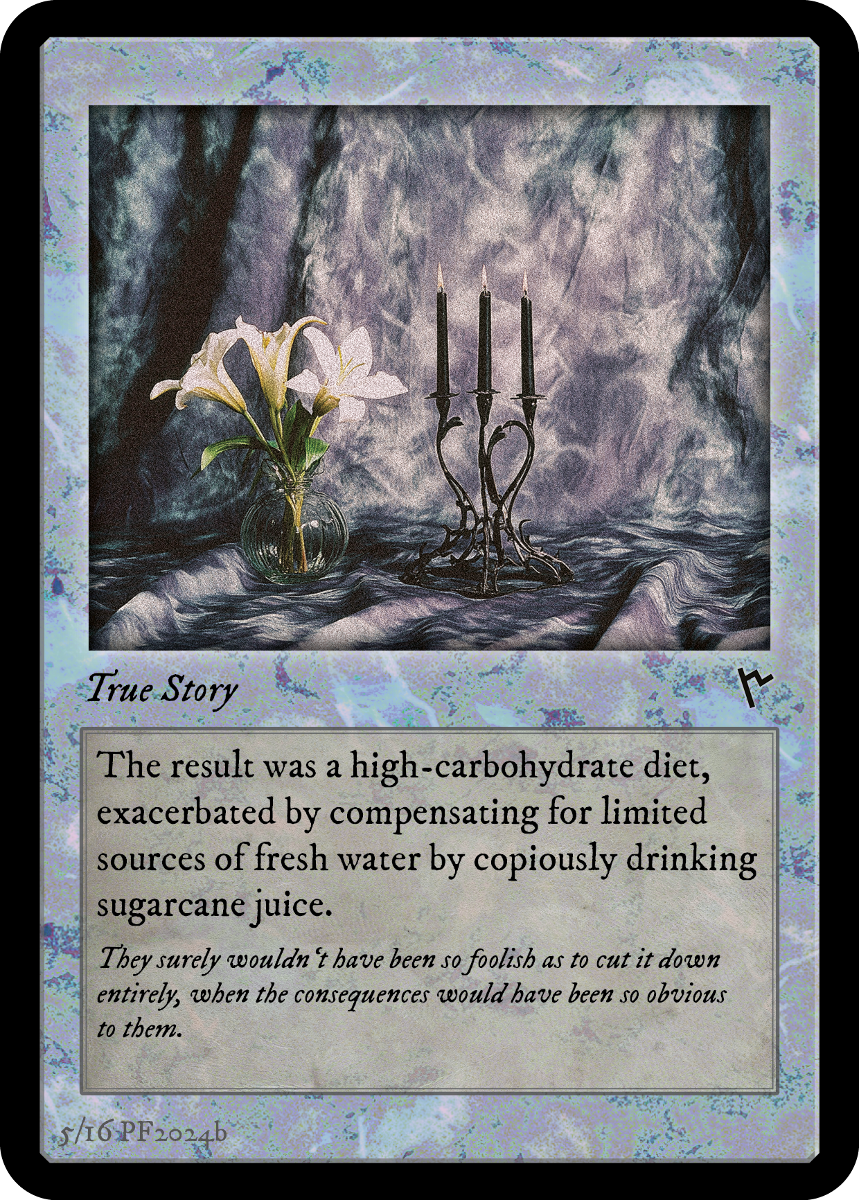 The first set of 165 cards exists online (on the project's website, the are.na channel, and the Instagram account) as well as in physical form as a printed deck of cards and exhibition piece. Sometimes, I describe the work as a distributed sculpture without a primary point of view that would qualify either the physical or digital form as more valid.
